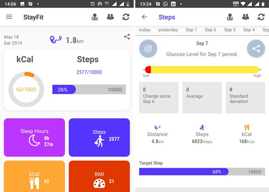 The fitness activities such as number of steps performed during the day, calories consumed and sleeping hours are very important to look at too as they all indicate how active the patient is, if a sufficient level of exercise during the day has been reached or not.